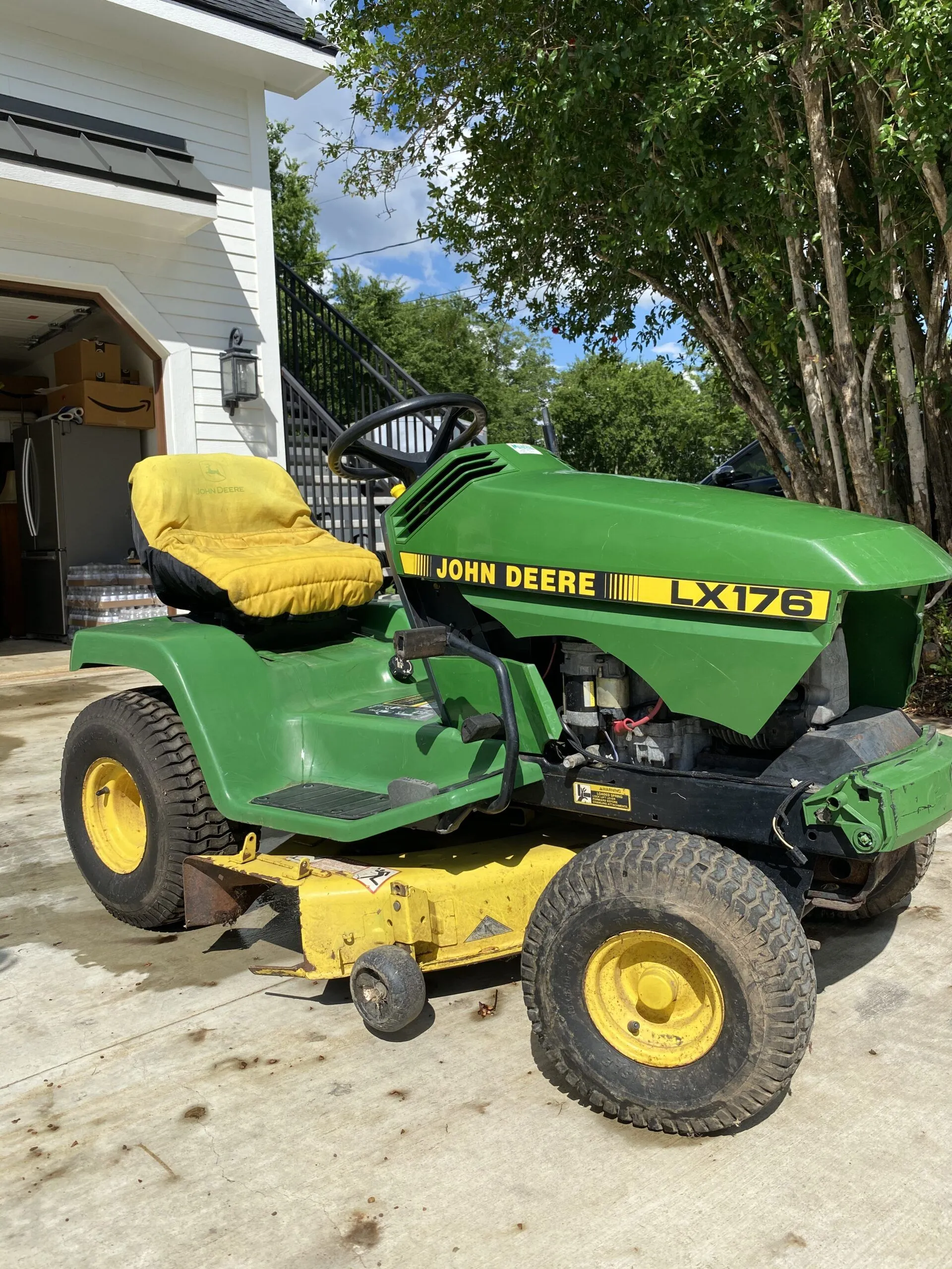 This 1991 John Deere LX176 needs a little TLC but can be used for whatever you need it to do! Runs good, electrical wiring is good and is ready for use. Comes with an extra hood and additional two sets of blades.