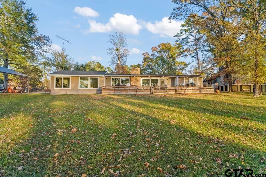 Experience refined lakefront living in this rare waterfront residence located in the coveted Crestwood Subdivision on Lake O’ the Pines. Designed to capture breathtaking panoramic water views, the home welcomes you with expansive rear windows that flood the interior with natural light and serene lake scenery. This 4-bedroom, 2.5-bath home offers a thoughtfully designed open-concept layout featuring granite countertops, a statement kitchen island, and elegant laminate wood flooring throughout the main living areas. A privately accessed storage room on the front left side of the home provides discreet, versatile space—ideal for lake essentials, hobby storage, or future customization. Recent enhancements include new exterior siding, a brand-new roof, and curated cosmetic updates that elevate both style and comfort. Outdoors, the back deck offers a peaceful setting for entertaining or unwinding while overlooking the water. Select furnishings may convey, allowing for a seamless transition into lake life. This is a rare opportunity to own a beautifully updated luxury retreat on one of East Texas’ most desirable lakes.