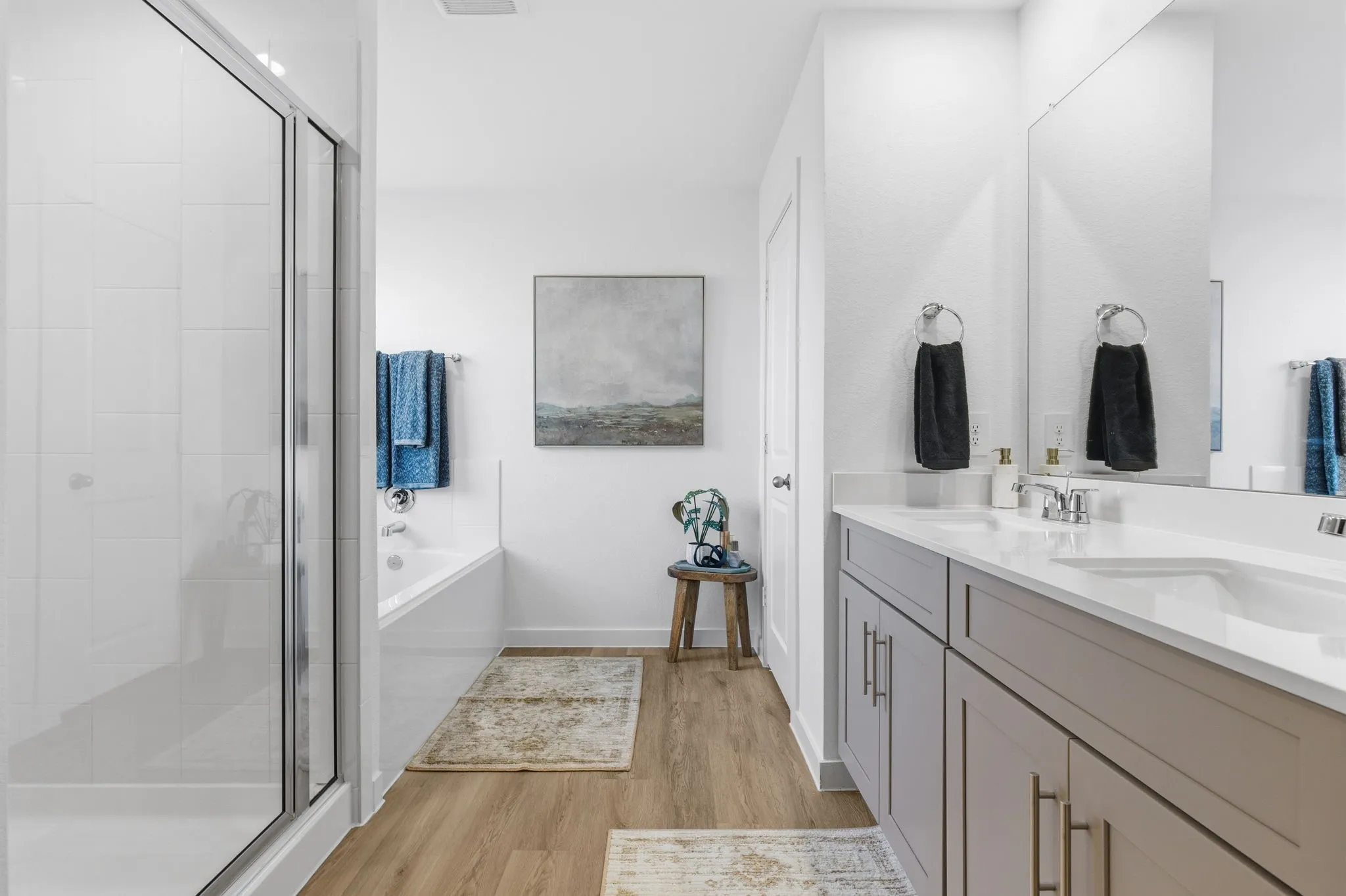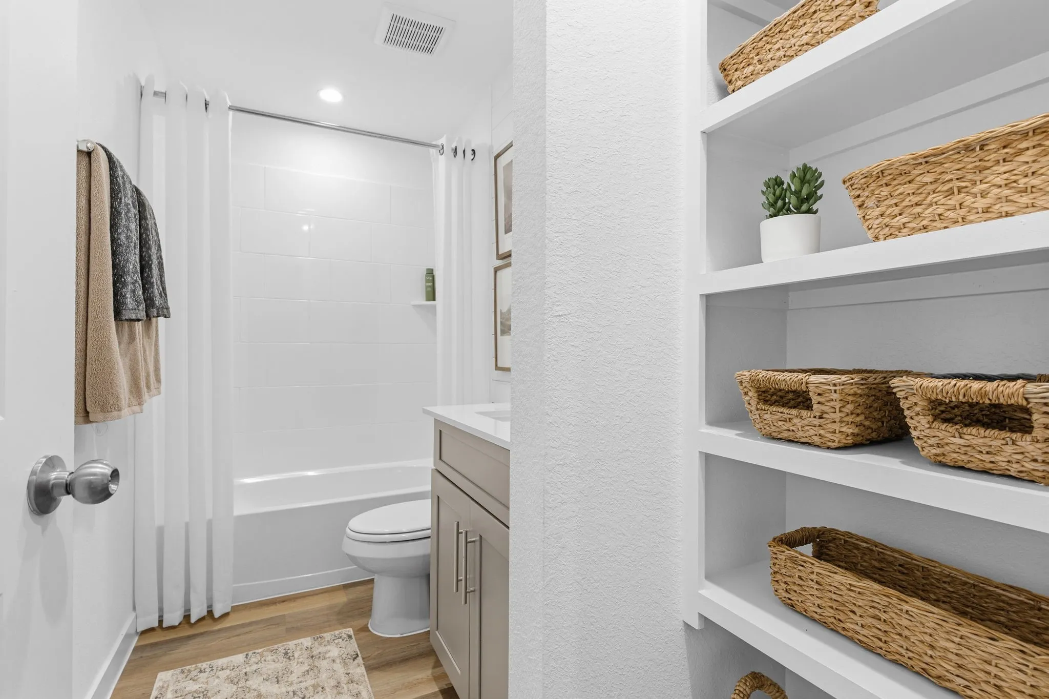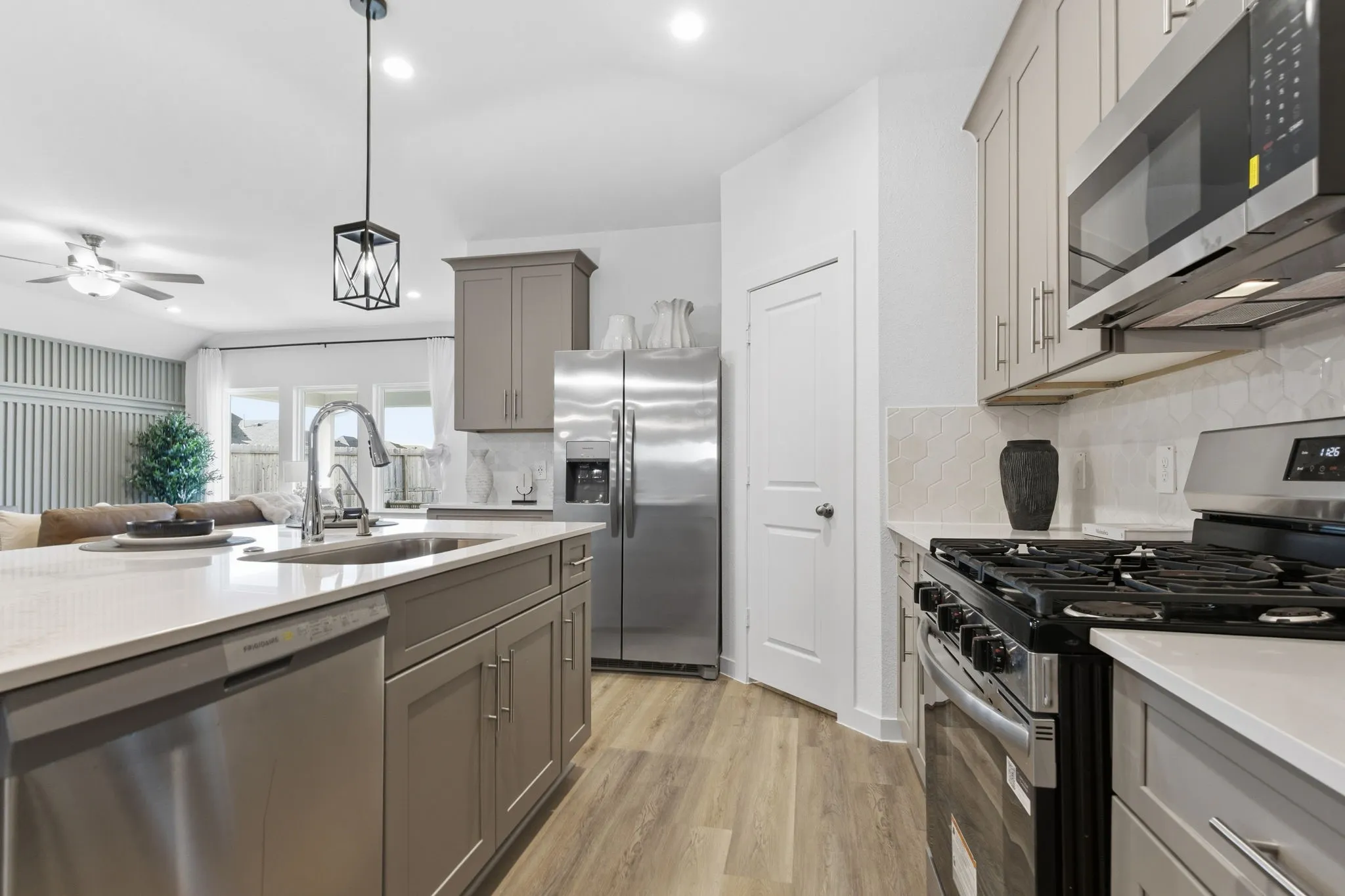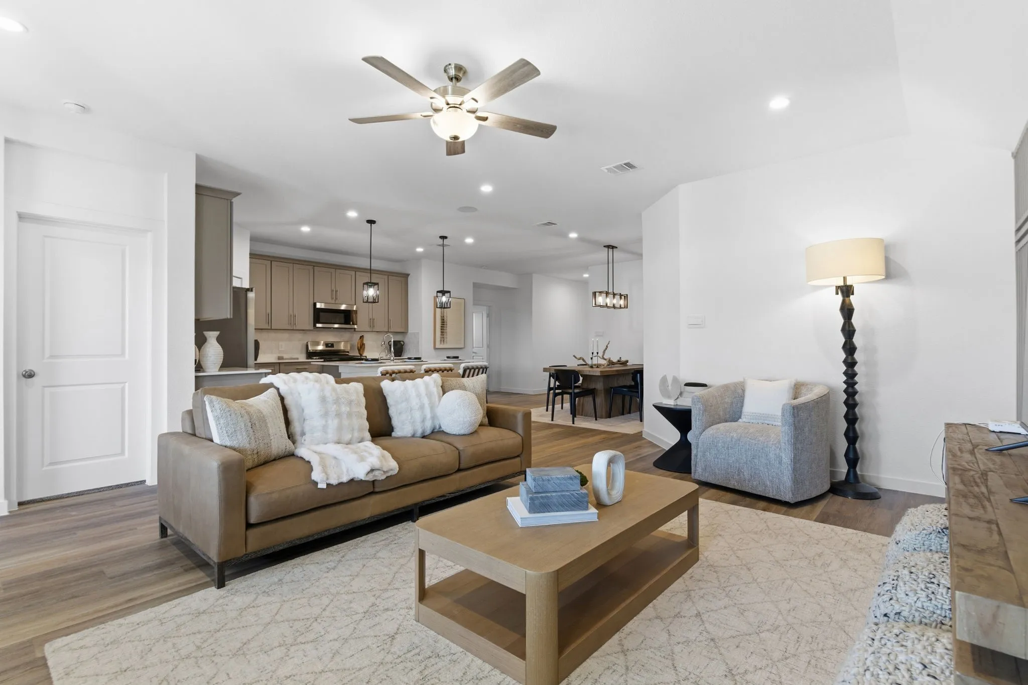 Welcome to the Burnet plan in the Lago Mar community! This single-story home spans 2,199sq ft and includes 4 bedrooms, 3 bathrooms, a private study, and a 2-car garage. As you enter, the long foyer with vinyl flooring leads to 2 secondary bedrooms and a secondary bathroom on one side, and a 3rd bedroom, secondary bathroom, and utility room on the other. The bedrooms have carpet, a tall closet, and a bright window, while the bathrooms feature vinyl flooring and a tub/shower combo. At the end of the foyer, you’ll find the family room, breakfast room, and L-shaped kitchen. The kitchen includes a tall pantry and kitchen island. The private study is perfect for an office, library, or secondary bedroom. The primary bedroom includes carpet flooring, bright windows, and a spacious bathroom with a double sink, linen nook, and walk-in closet. Exit through the back patio to enjoy the outdoors. Call for a tour today!