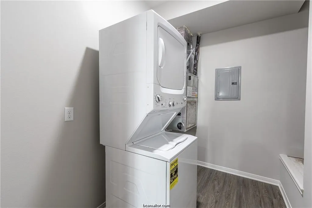 Consider these brand new construction condos by Todd Homes, styled to please, and never lived-in. Academy Condominiums, located only 6 minutes to Downtown Bryan, 15 minutes to Texas A&M University, and 4 minutes to Blinn College. A pool, outdoor kitchen, reserved parking, fitness center, and gated perimeter provide amenities that make this complex attractive. You will love this open concept floor plan featuring granite countertops, vinyl plank flooring the main living areas, and appliances–washer, dryer, and refrigerator included. Live richly on a modest budget in the new and desirable Academy Condominiums. Available now and they won’t last long! Photos of a similar completed unit.