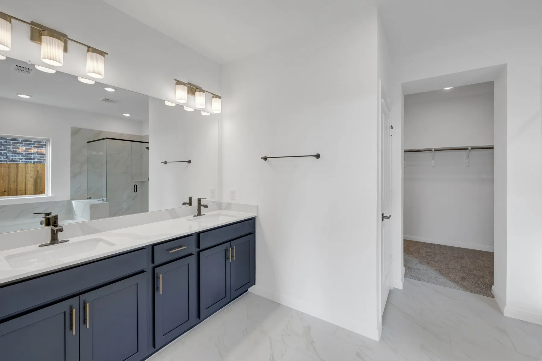 junior beds, guest suite, and retreat/game room. Upstairs bath has dual sinks. Exterior includes brick/stone facade, 3-car garage, full gutters, sprinklers, and covered back porch w/ gas line. Conditioned spray-foamed attic for energy efficiency and great storage