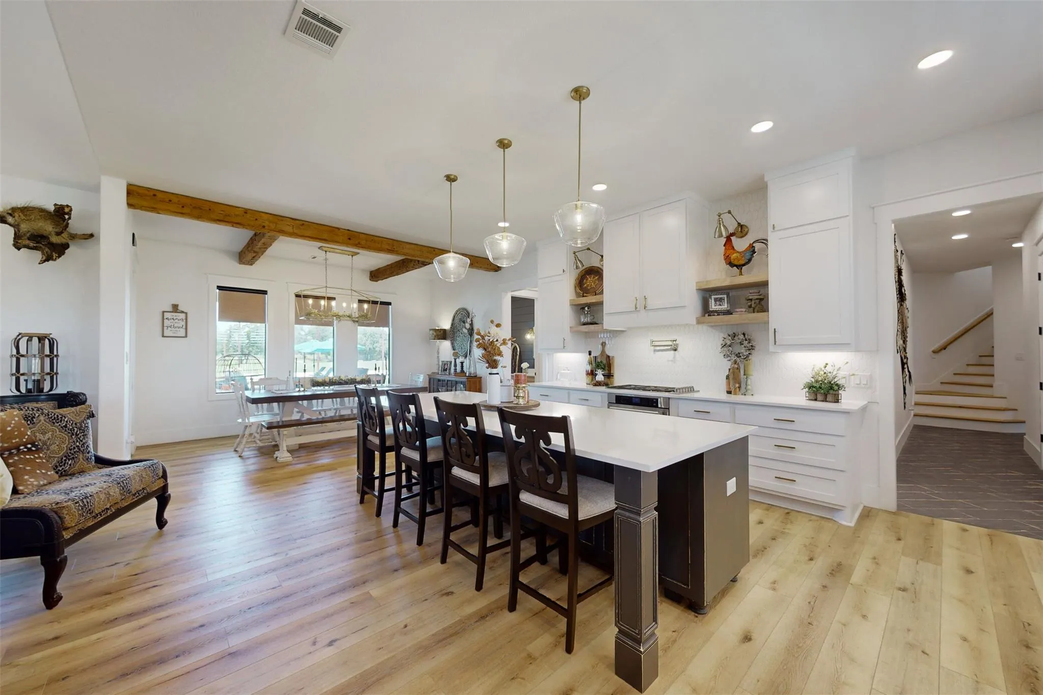 Offered on 12 Ag exempt acres with a pond and inground pool this Expansive 3894 sq ft Ranch style home has everything you have dreamed of. A Silo covered Fire Pit, 80 x 80 metal building with a 60 x 40 enclosed area and 20 x 20 covered area on 3 sides. In process is a 2100 sq ft outdoor kitchen/pavilion ready for your special design. The home boasts 4 bedrooms, 3 1/2 bathrooms, a dedicated office that has a closet so it could be a 5th bedroom, a butler’s pantry, oversized utility room and an upstairs bonus room. The attached garage is extra deep for your long wheelbase vehicles. The open floor plan kitchen, dining room and living room is accentuated with century old beams that add tons of character to the home. You rarely find all of this in one package. Call today to schedule an appointment to see this beauty!