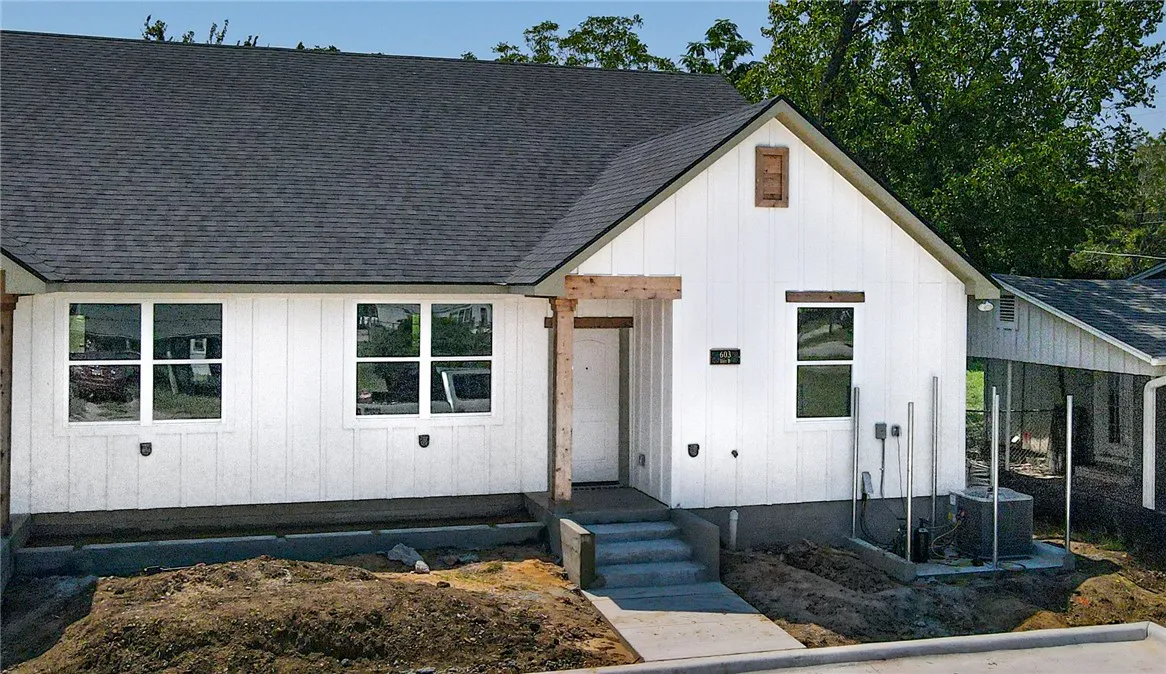 NEW construction modern farmhouse-style duplex in prime Caldwell location. This 3 bed, 2 bath home features an open layout, wood accent wall, black fixtures, stainless steel appliances, and upgraded vinyl flooring in the primary suite. Enjoy a spacious primary bedroom with walk-in closet, dual vanity, tile shower, and private water closet. Energy-efficient Low-E windows, covered front/back porches, fenced backyard, irrigation system, elegant exterior lighting, and a concrete driveway with 3 parking spots. Move-in ready October 1. Call to schedule your showing today!