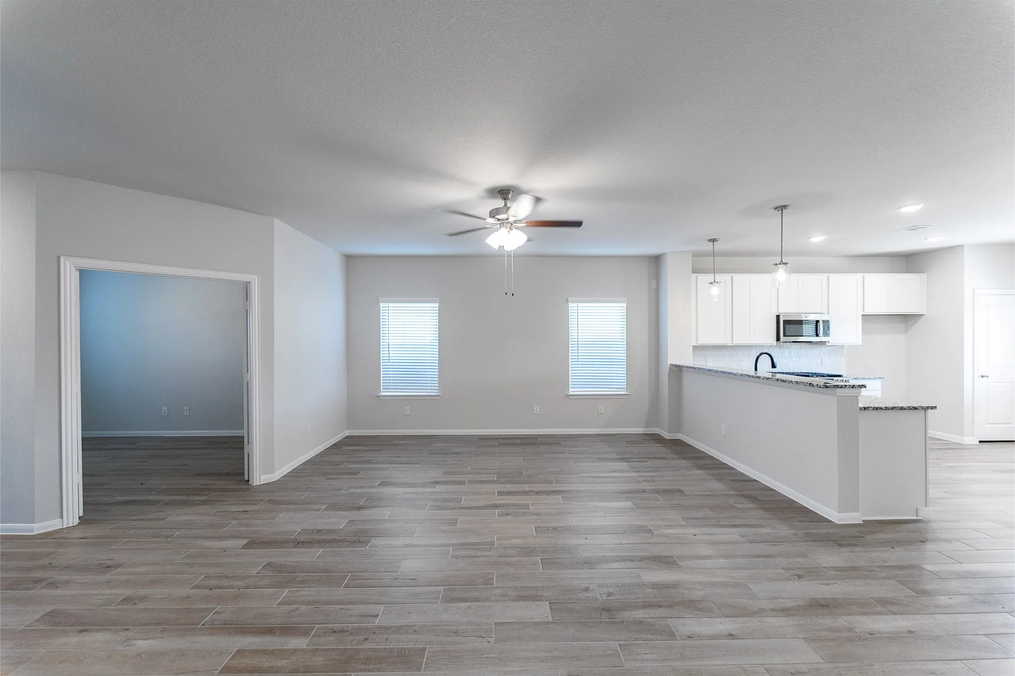 The Comal home boasts three bedrooms, two full bathrooms, and an open-concept design!