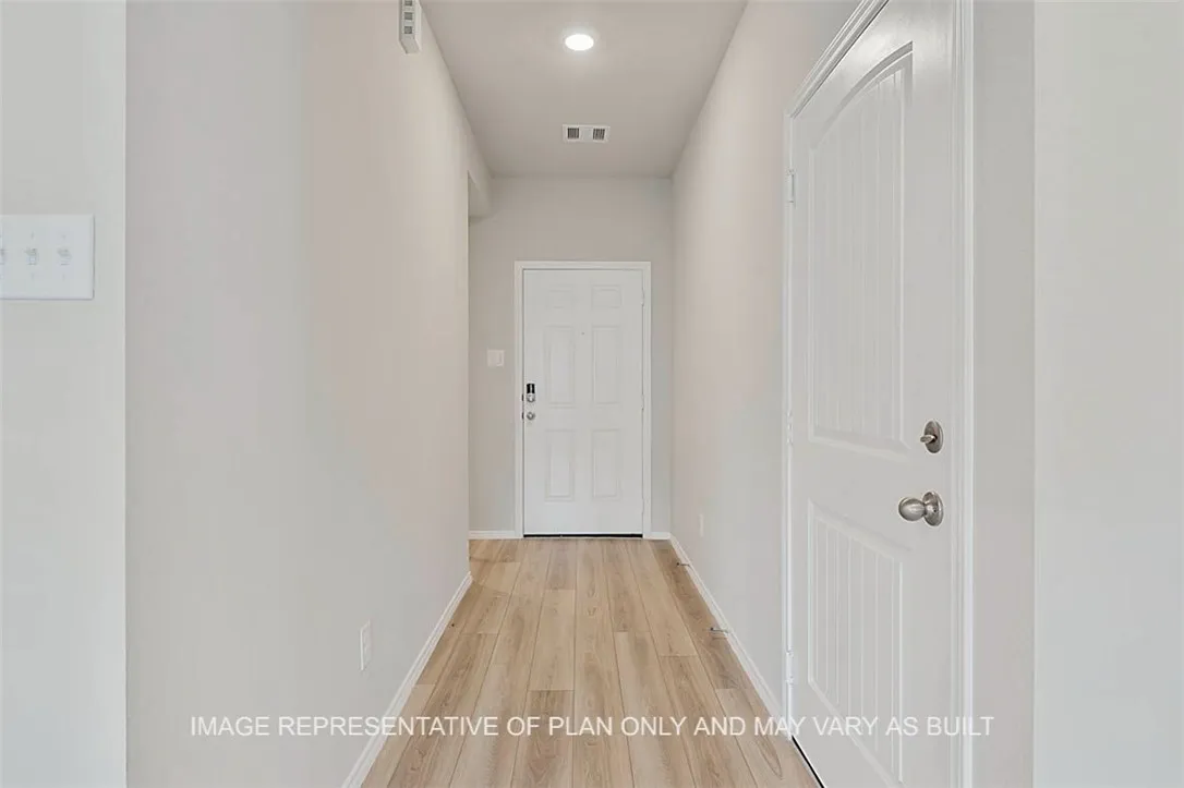 The Lakeway is a single-story, 4-bedroom, 3-bathroom home featuring approximately 2,034 square feet of living space. The large foyer opens to the secondary bedrooms, and bath. Center kitchen includes a breakfast bar and corner pantry. Open concept floor plan boasts spacious combined living room and dining area. The spacious main bedroom, bedroom 1, features an attractive bathroom with walk-in closet. Bedrooms 3 and 4, along with bath 3 are located just off of the Dining Room. The standard covered patio is located off the living room. You’ll enjoy added security in your new D.R. Horton home with our Home is Connected features. Using one central hub that talks to all the devices in your home, you can control the lights, thermostat and locks, all from your cellular device. With D.R. Horton’s simple buying process and ten-year limited warranty, there’s no reason to wait! (Prices, plans, dimensions, specifications, features, incentives, and availability are subject to change without notice obligation)